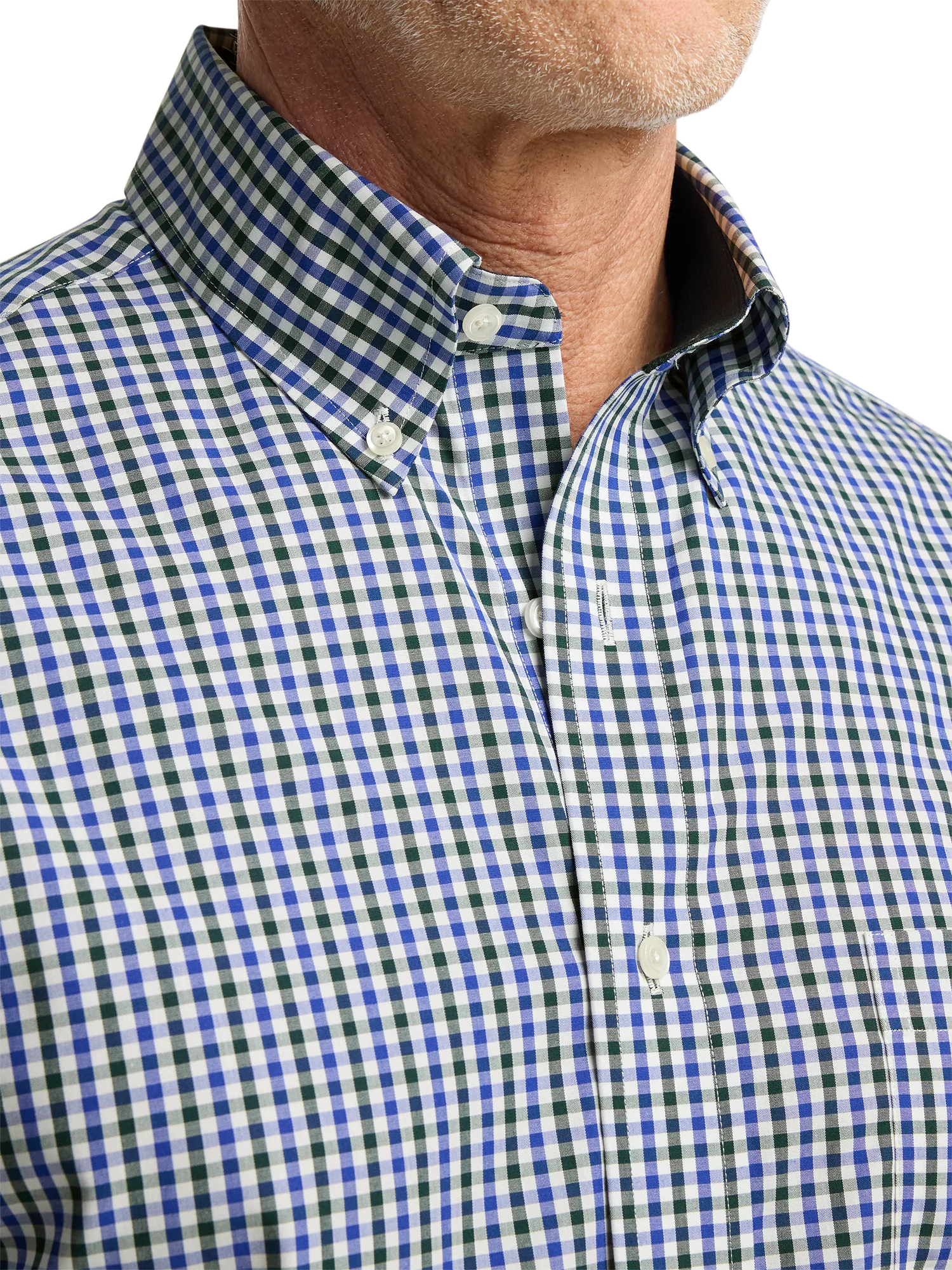 Non-Iron Cotton Gingham Dress Shirt With Contrast Trim - Blue/green