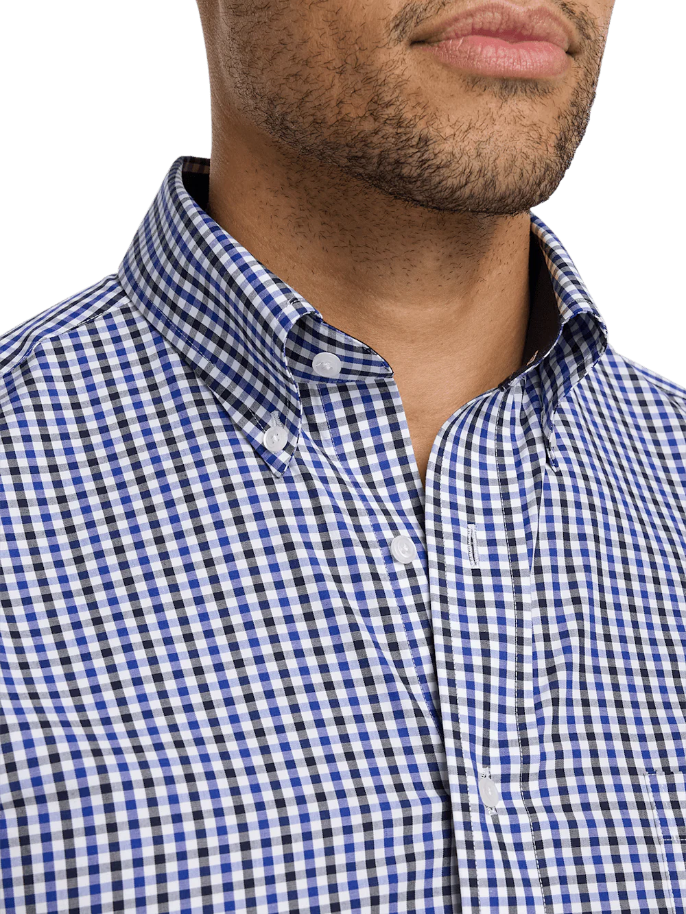 Non-Iron Cotton Gingham Dress Shirt With Contrast Trim - Blue/black