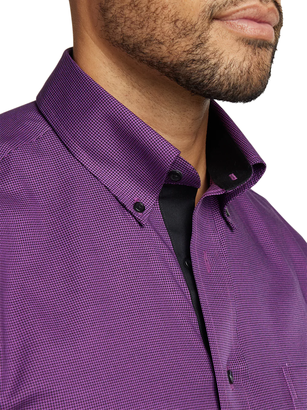 Non-Iron Cotton Houndstooth Dress Shirt With Contrast Trim - Black/purple
