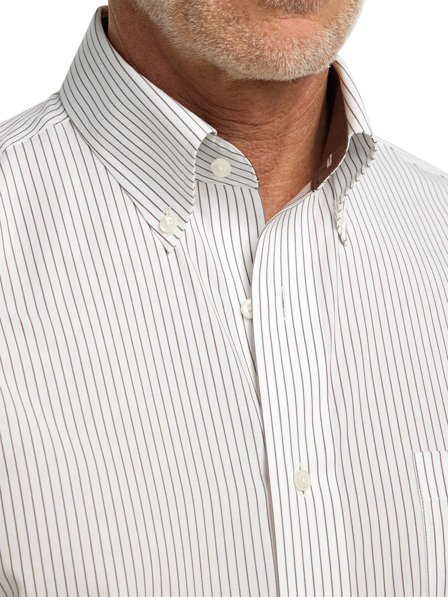 Non-Iron Cotton Stripe Dress Shirt With Contrast Trim - Brown