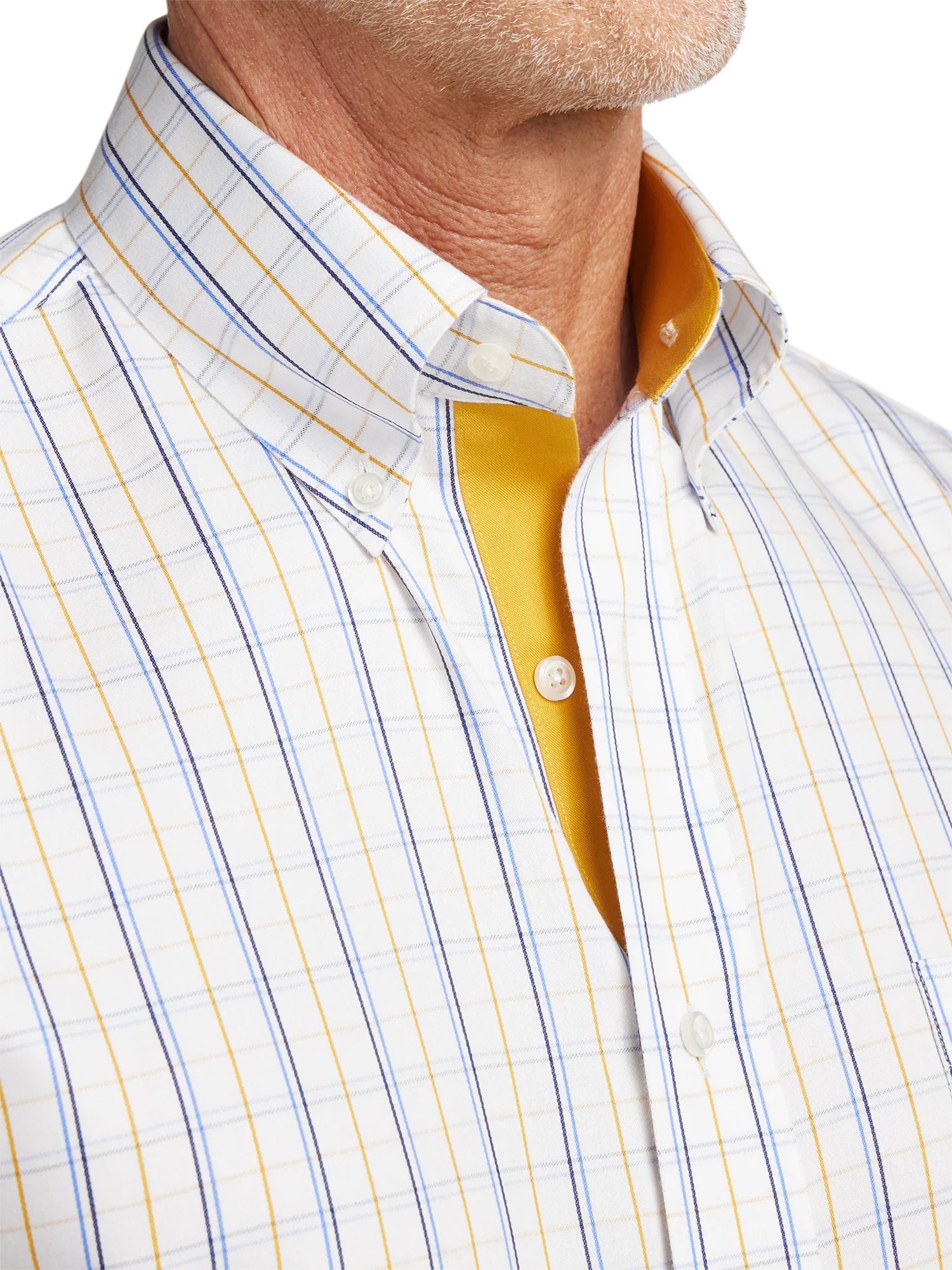 -70%Non-Iron Cotton Windowpane Dress Shirt With Contrast Trim - White/gold—