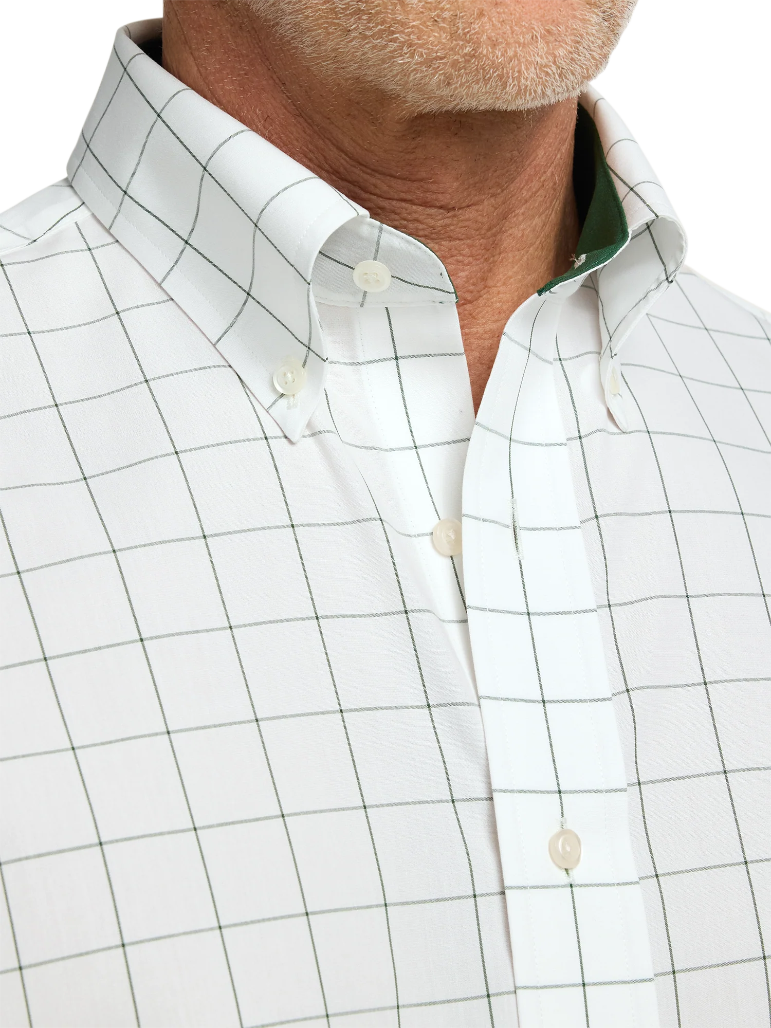 Non-Iron Cotton Windowpane Dress Shirt With Contrast Trim - Green