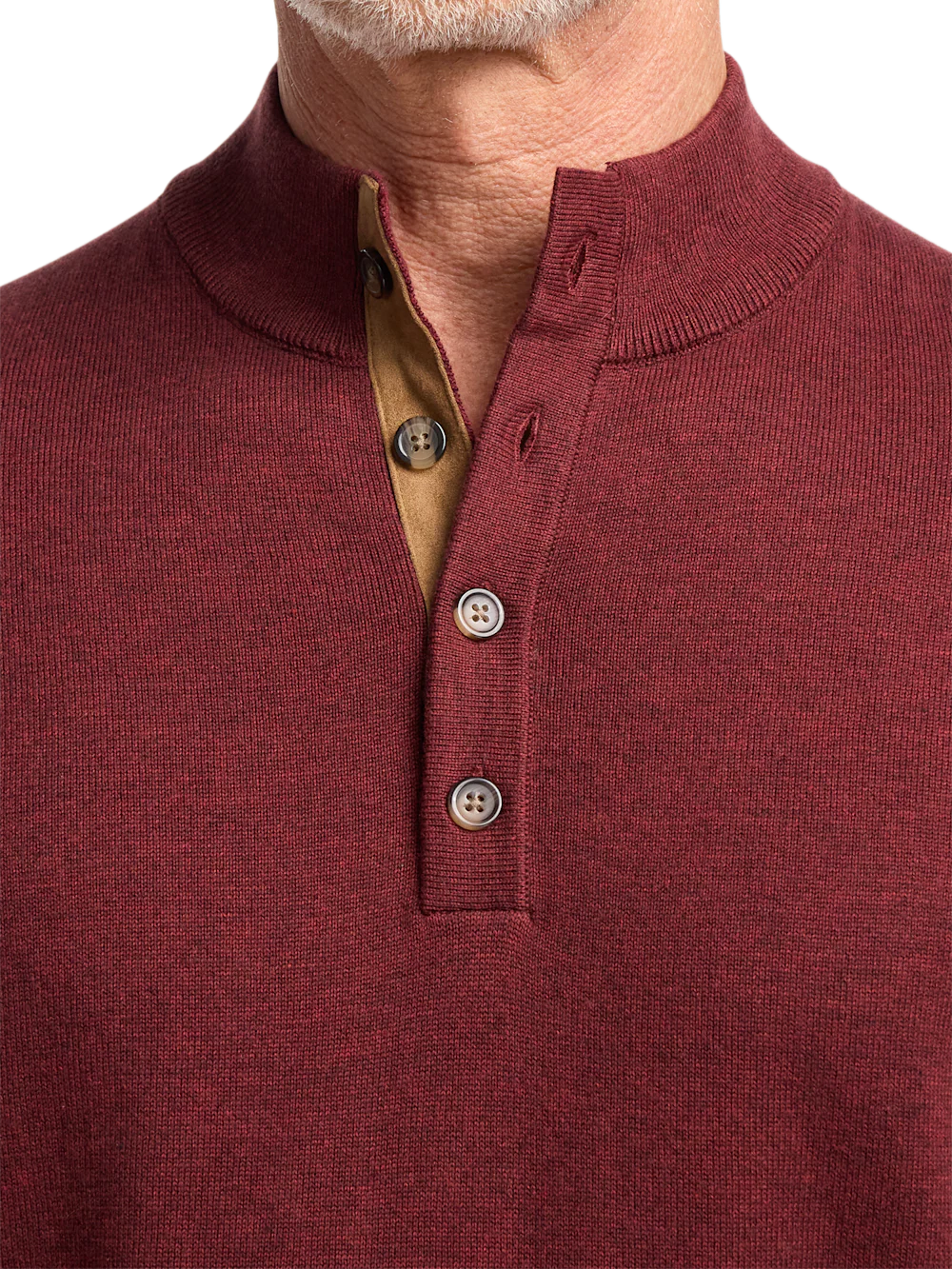 -70%Supima Cotton Four Button Mock Neck Sweater - Burgundy—