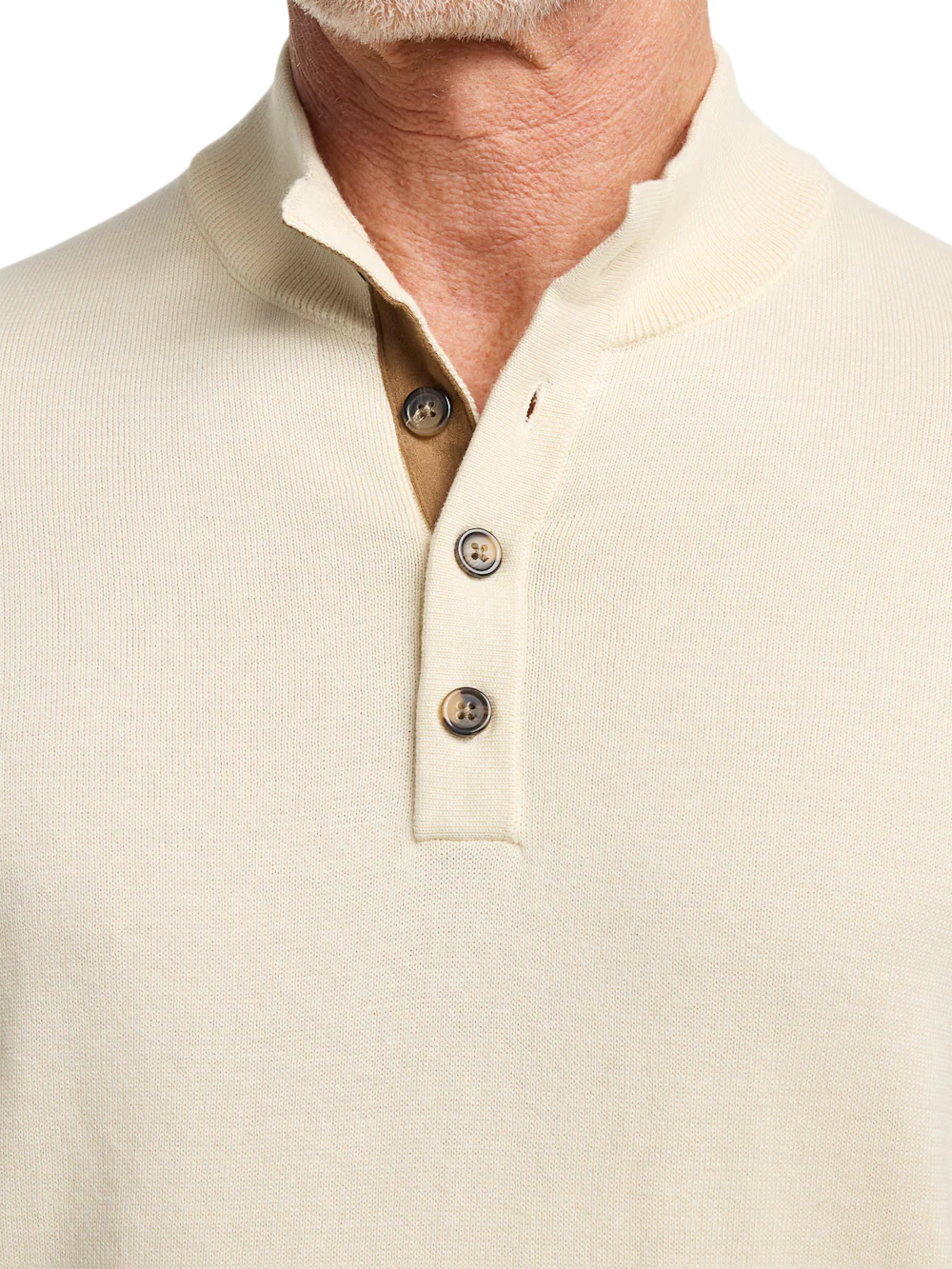 Supima Cotton Four Button Mock Neck Sweater - Ivory