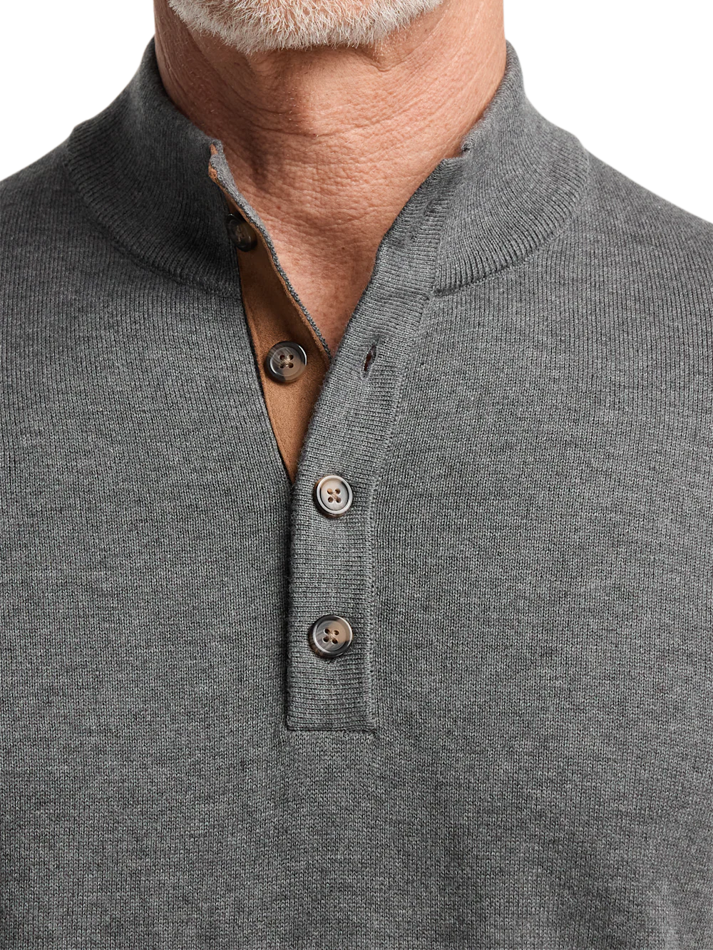 Supima Cotton Four Button Mock Neck Sweater - Medium Grey