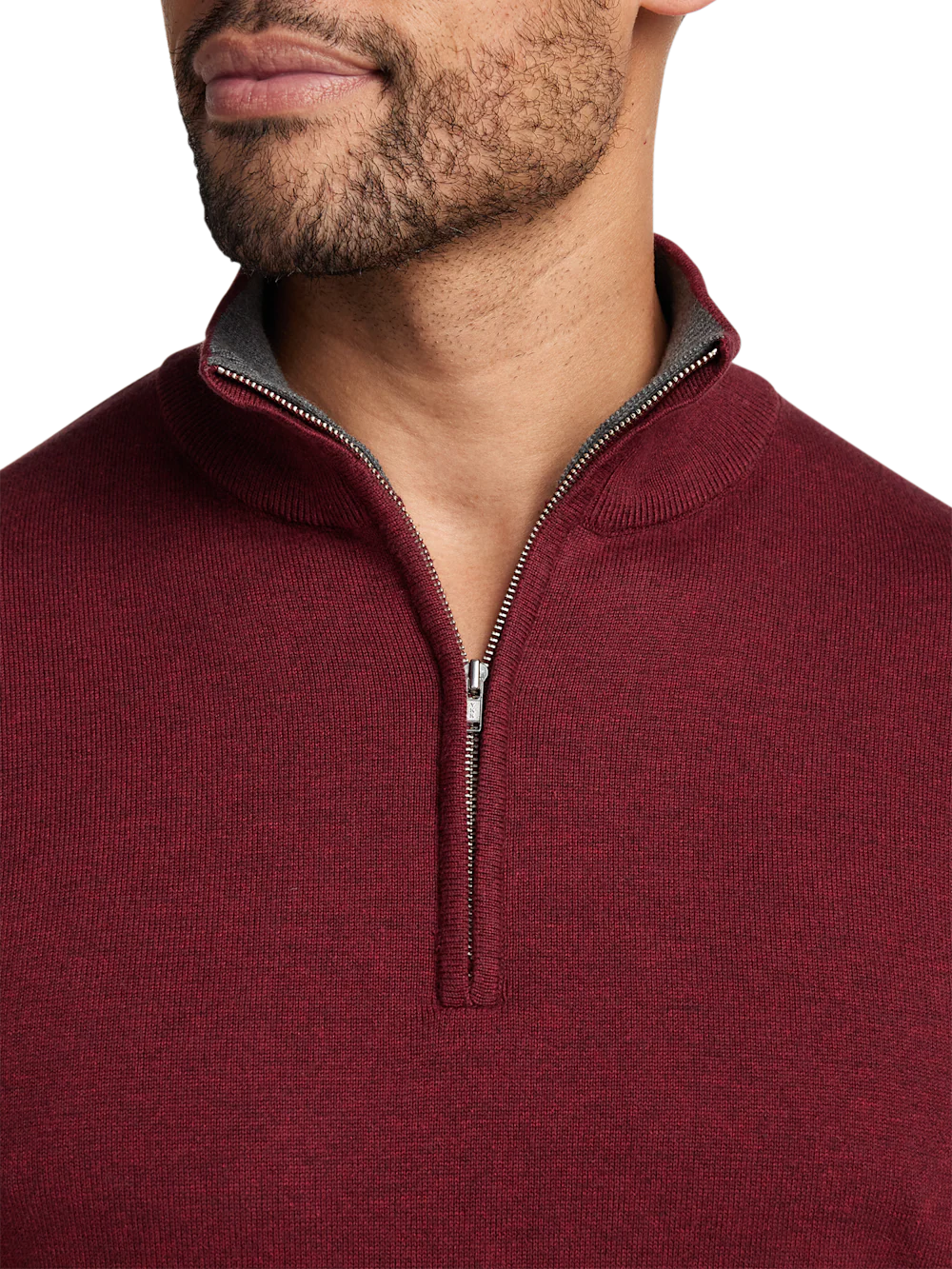 -70%Supima Cotton Quarter Zip Mock Neck Sweater - Burgundy—