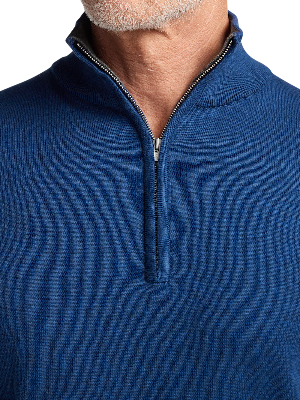 Supima Cotton Quarter Zip Mock Neck Sweater - Dark Blue