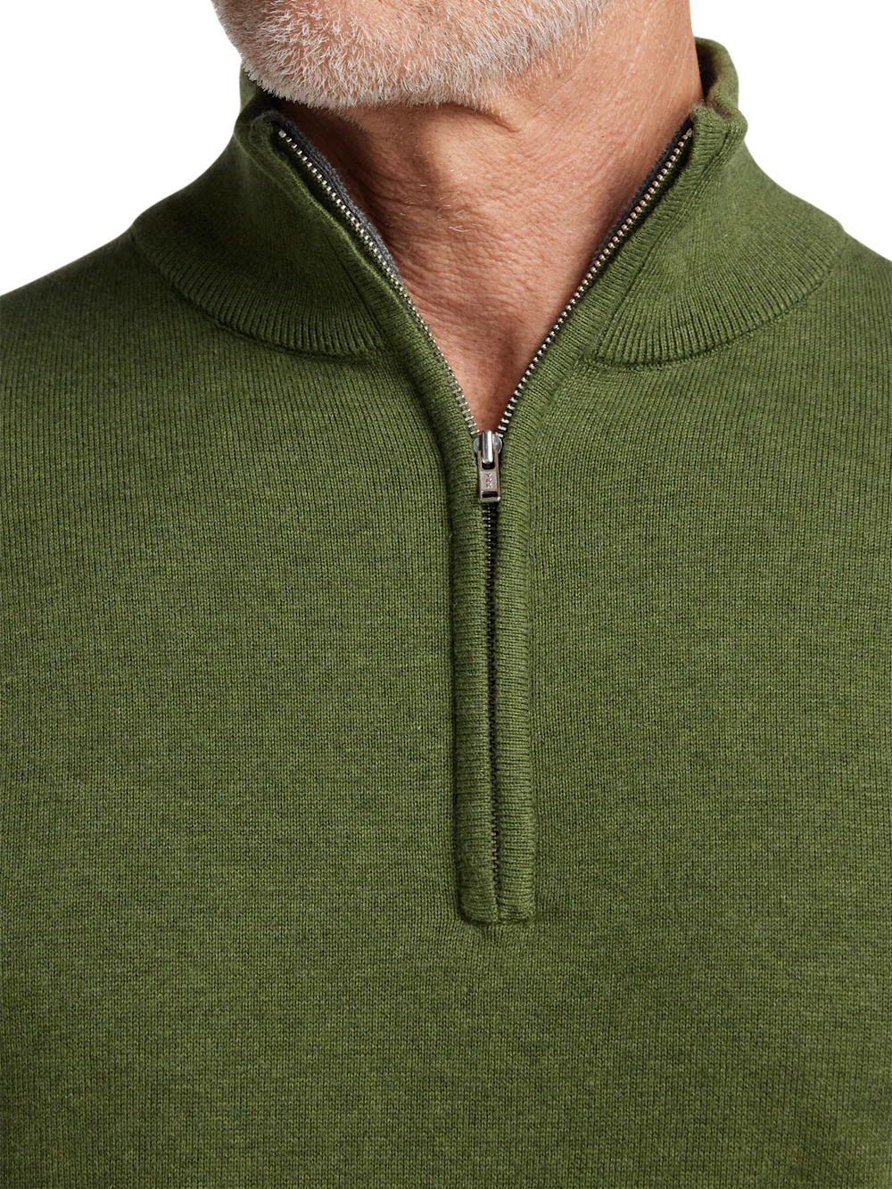 Supima Cotton Quarter Zip Mock Neck Sweater - Olive
